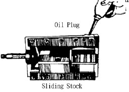 7. Keep a gap 2-4 mm and slant the sliding stock a little bit, then fill oil in.
